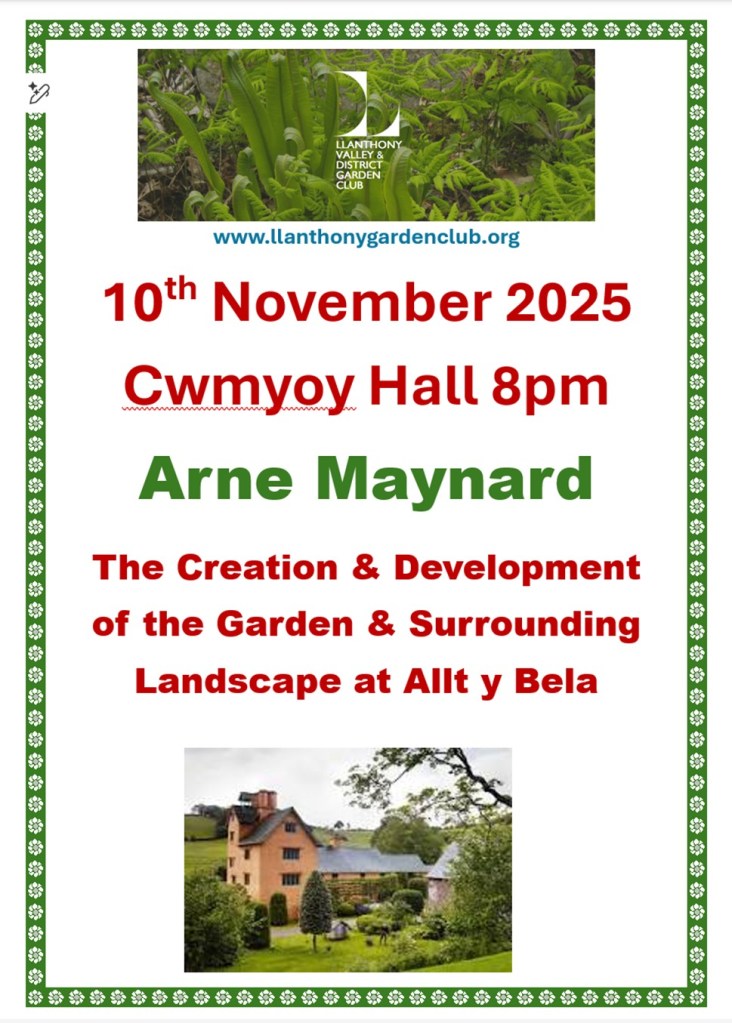 Our November meeting was an excellent talk by the internationally important garden designer Arne Maynard about the process of designing and landscaping the garden around his beautiful medieval tower house near Usk.